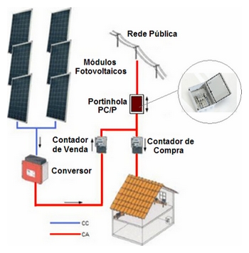 A electricidade convertida passa no contador de venda e é vendida à rede eléctrica ao preço bonificado, no caso de regime bonificado, ou ao preço de compra, no caso de o regime ser geral.